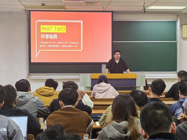 胡诗帆作为连续两届毕业班辅导员,着重为同学们介绍了当前就业市场的形势、特点,建议同学们未雨绸缪,提前准备。此外,他还就往届同学中常见的就业困难向20级同学发出预警,建议针对性进行知识准备和能力积累。