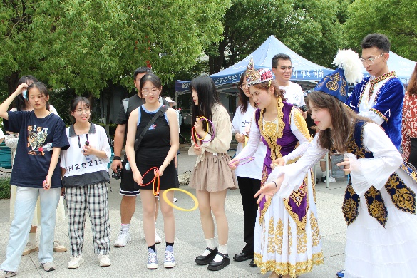 民族团结主题图片展跨越时空,为师生讲述“民族团结佳话”、展示“民族先锋事迹”、传递“身边榜样力量”、共建“南航和谐家园”。民族器乐展区上演师生精心编排的《喀秋莎》、《白羊岭》等节目,展现冬不拉、手风琴、热瓦普等乐器的别样魅力,吸引往来师生驻足观看。随着维吾尔族舞蹈、哈萨克族“黑走马”的热情节奏,现场师生欢乐共舞,沉浸式体会民族精粹。活动现场还展示了绚丽缤纷的民族服饰、特色民族物件等展品,师生近距离感悟民族文化深厚的底蕴和内涵,并在趣味民族游戏和丰盛的民族美食中,共享悠久灿烂的各民族文化。